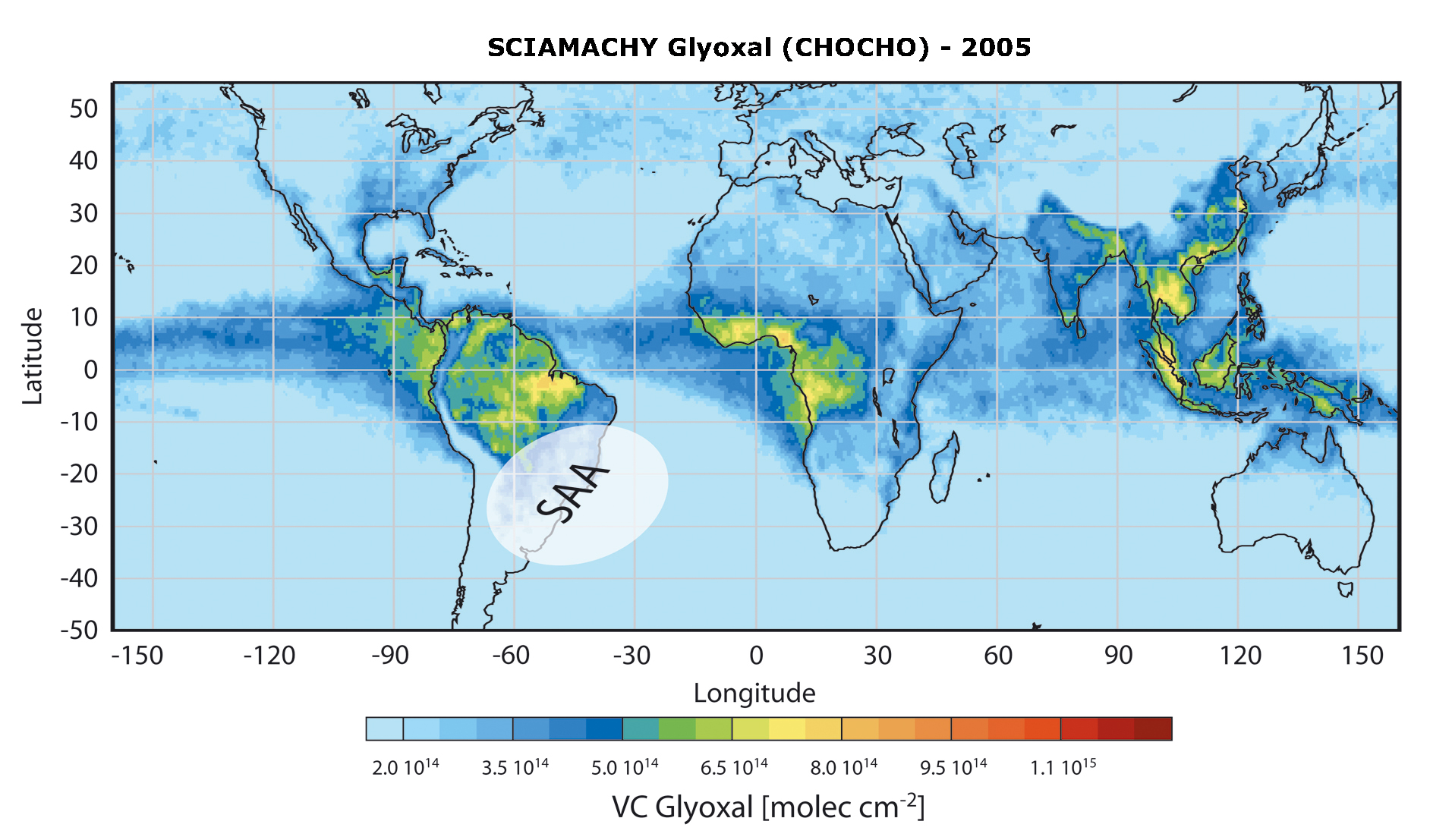 global distribution of formaldehyde (HCHO), derived from SCIAMACHY measurements