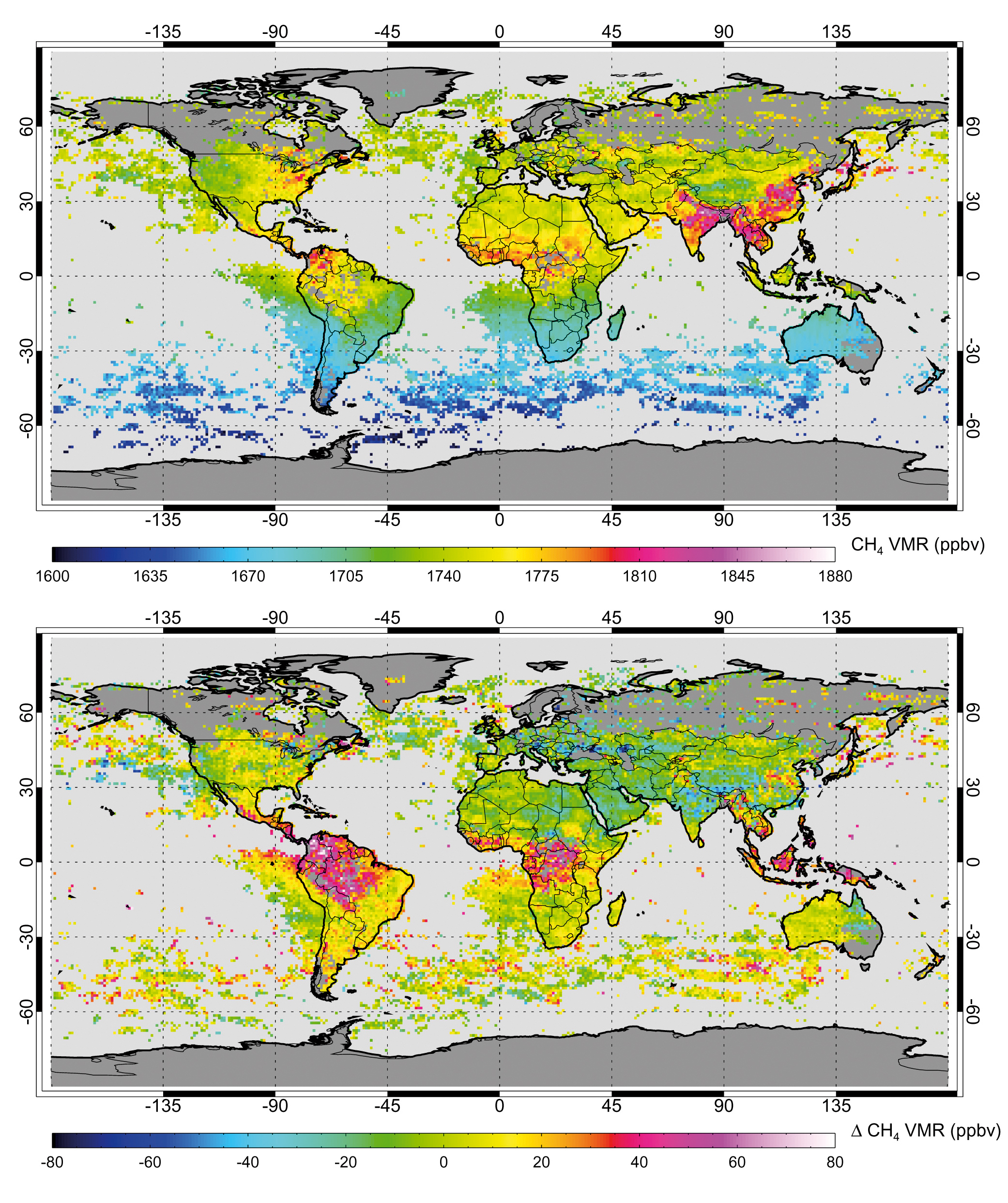 Central Africa and South America. (images: Frankenberg et al. 2005) |