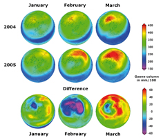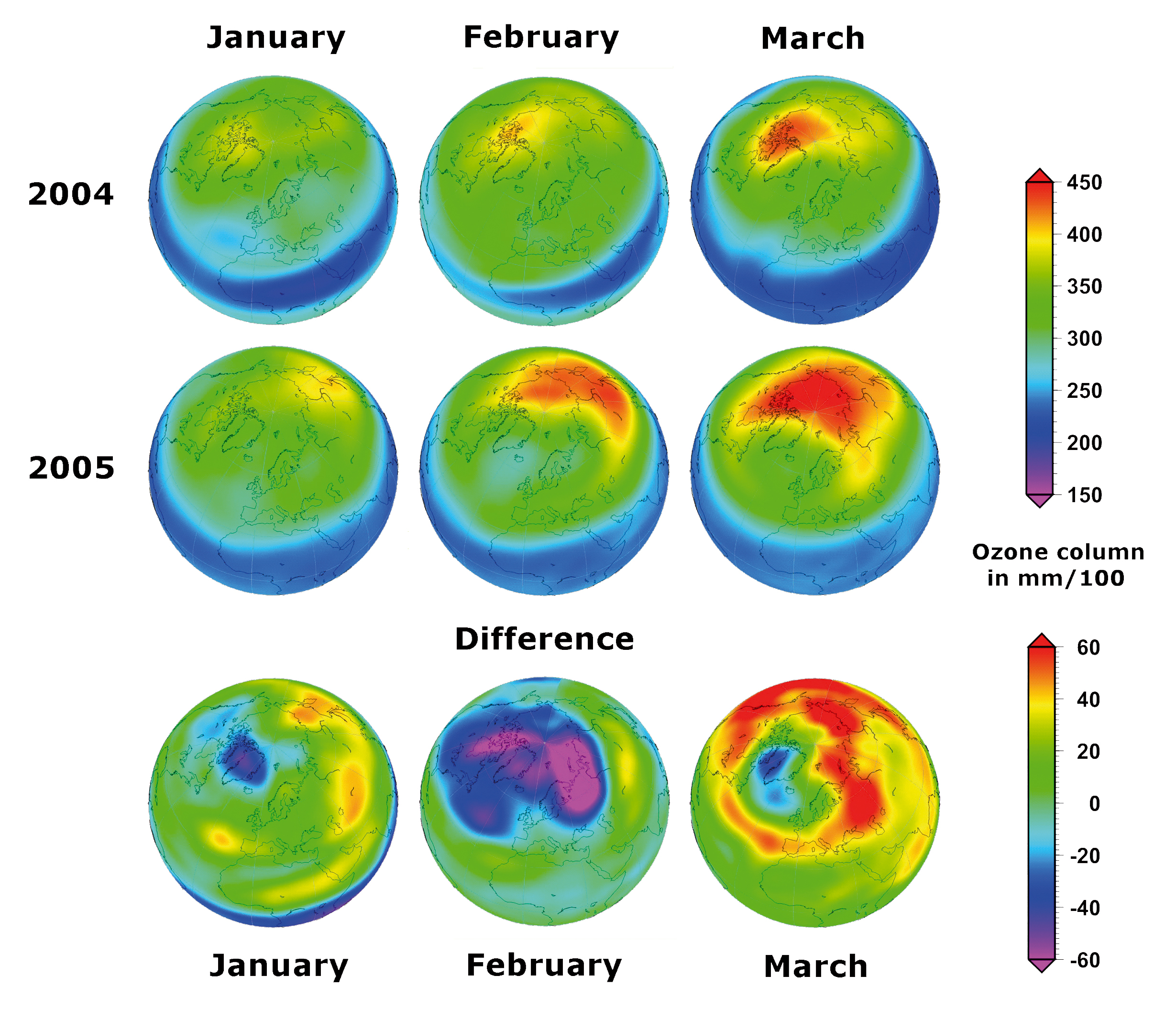 in the stratosphere over the Arctic, significant ozone loss occurred in February 2005 with a recovery of the ozone layer