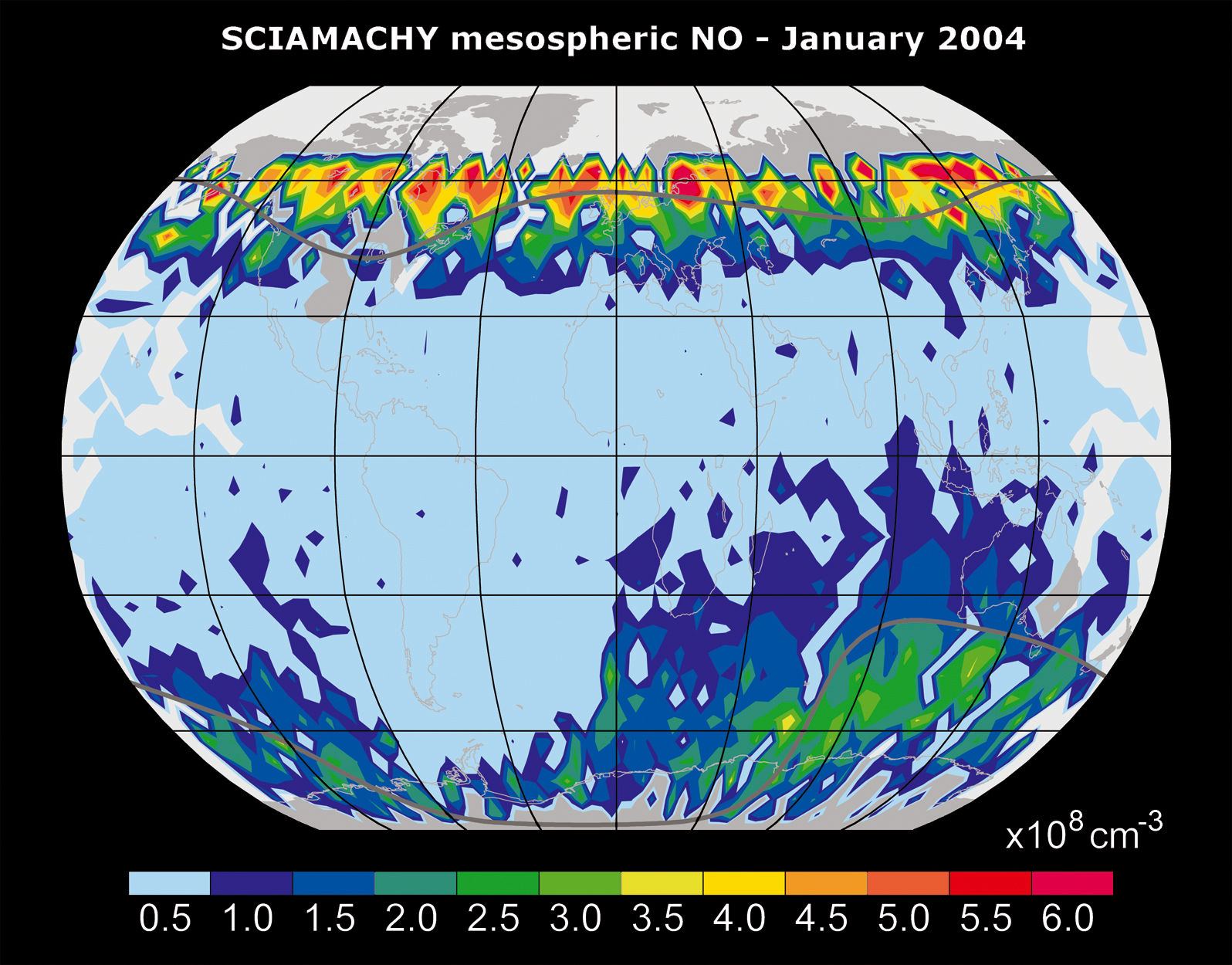 retrieval and cause a data gap. No data are available north of 65°, as this area is in polar night. (image: M. Sinnhuber/M.