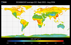 with biomass burning. The data is largely consistent with MOPITT and model results. (image: H. Schrijver, SRON) |