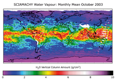 monthly mean of gridded SCIAMACHY water vapour columns for October 2003.