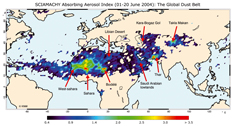 Global Dust Belt. A 20 day average of SCIAMACHY AAI in June 2004 shows the spatial distribution of desert