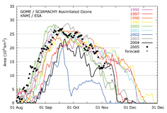 on observations of GOME and SCIAMACHY. The area includes ozone column values below 30° south lower than