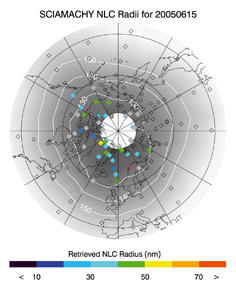 particle sizes for June 15th, 2005 derived from SCIAMACHY limb measurements. The grey solid diamonds