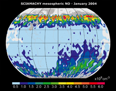 contours indicate the temperature field at 83 km altitude as measured with AURA/MLS. (image: C. von Savigny, IUP-IFE,