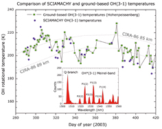 of the temperature at the mesopause derived from SCIAMACHY nighttime limb emission spectra (inset)