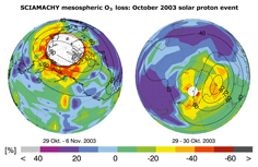 channel 3 as measured by SCIAMACHY. (images: Big Bear Solar Observatory, SOHO and IUP-IFE, University of Bremen) |