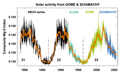 activity measured via the Mg II index by several satellite instruments including GOME and SCIAMACHY.