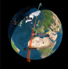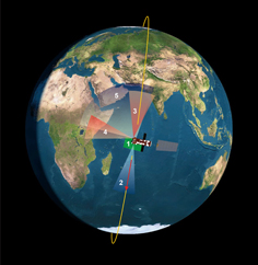axis always points to that side, where Earth rotation moves the surface towards the sub-satellite track. (graphics: DLR-IMF) |