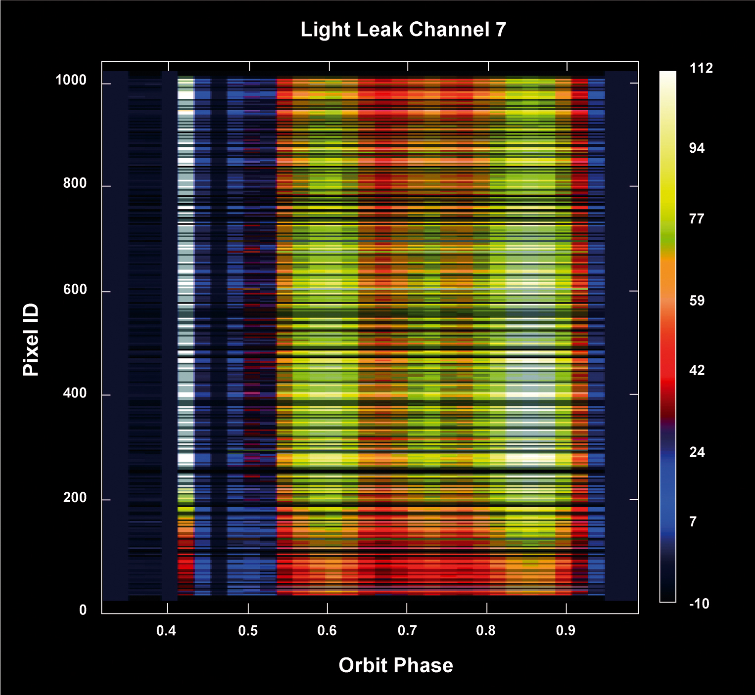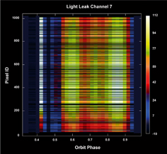 light leak signal for all pixels in channel 7 as a function of orbit phase. The x-axis shows the orbit phase (eclipse corresponds