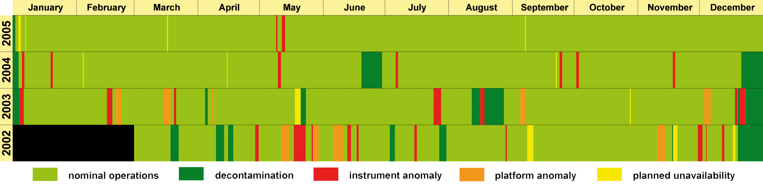 periods after instrument safing are omitted. The information has been derived from the operational