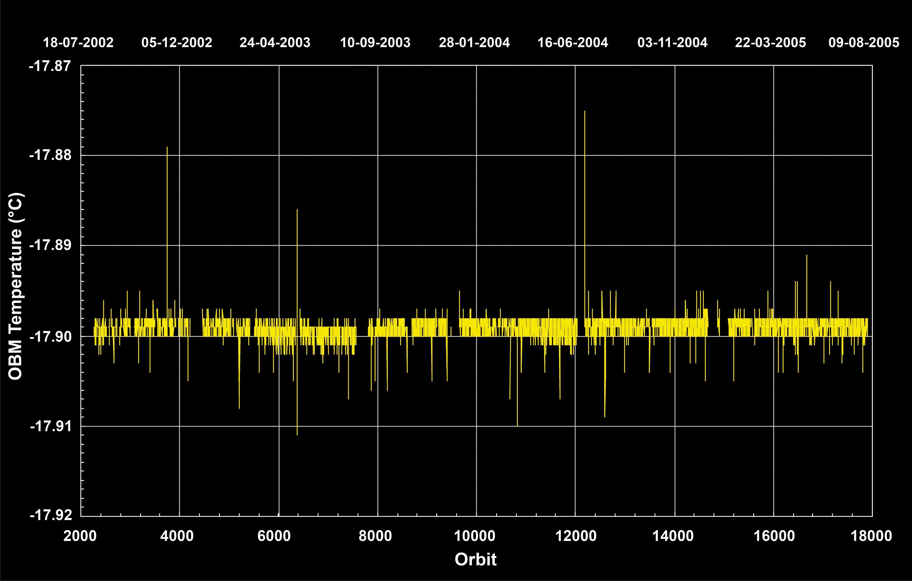 OBM temperature per orbit between the start of quasi-routine measurements