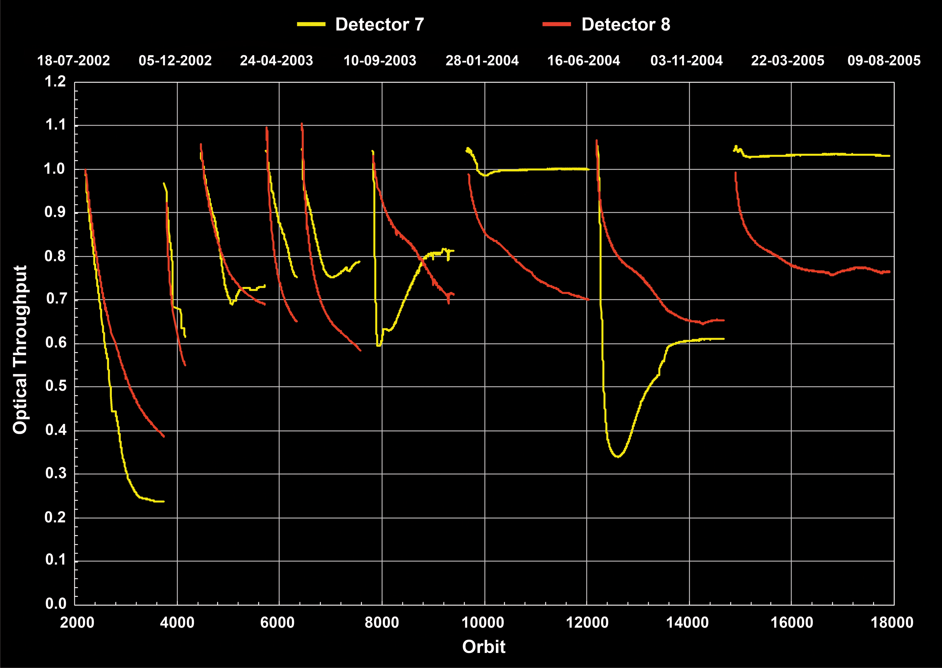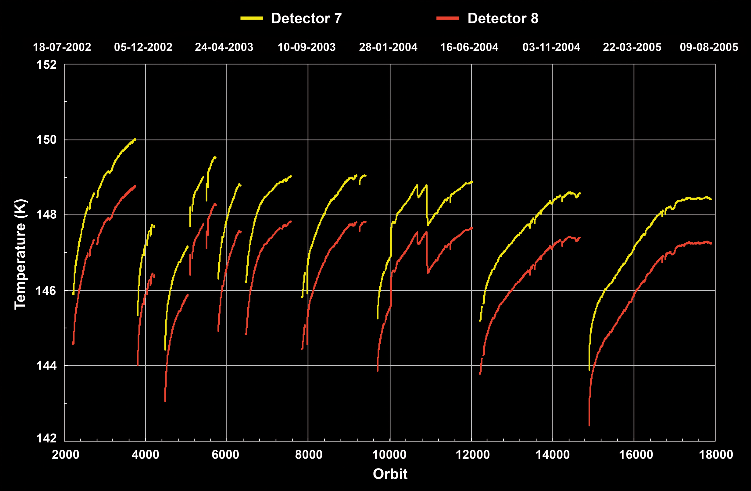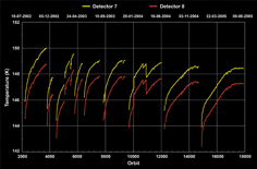 detector temperatures per orbit for the SWIR channels 7 & 8. Displayed data are as