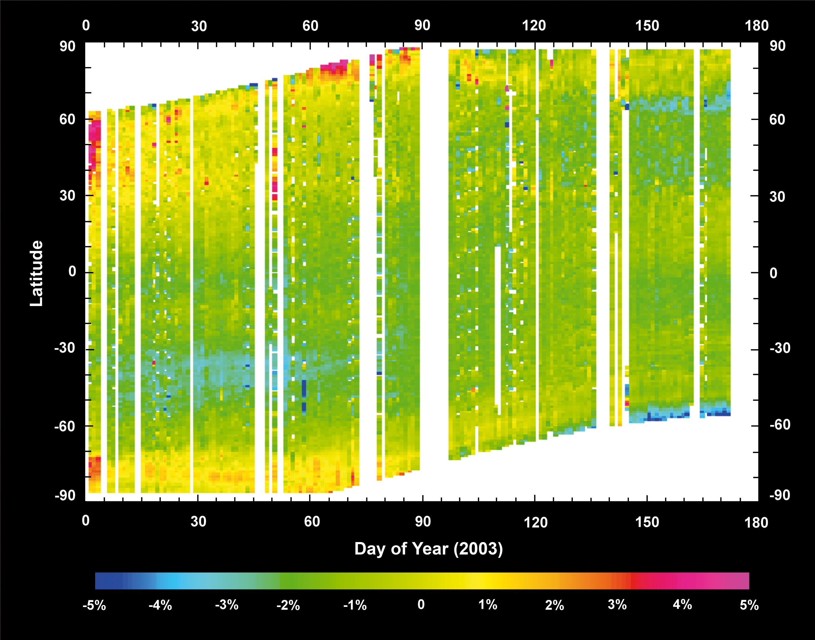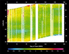 day since January 1st, 2003 (horizontal axis) and the latitude (vertical axis). Data is presented with a latitude resolution