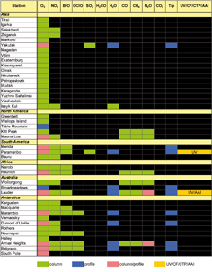 stations contributing to SCIAMACHY validation and associated SCIAMACHY
