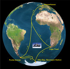 of the Polarstern cruise during the ANT XIX campaign between November 2001 and May 2002. (graphics: DLR-IMF) |