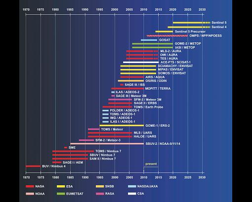 with relevance for SCIAMACHY. The list of missions is not intended to be complete but to illustrate the progress in spaceborne instrumentation for atmospheric composition monitoring.