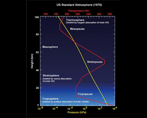 Atmospheric pressure and temperature profiles for mid latitudes.