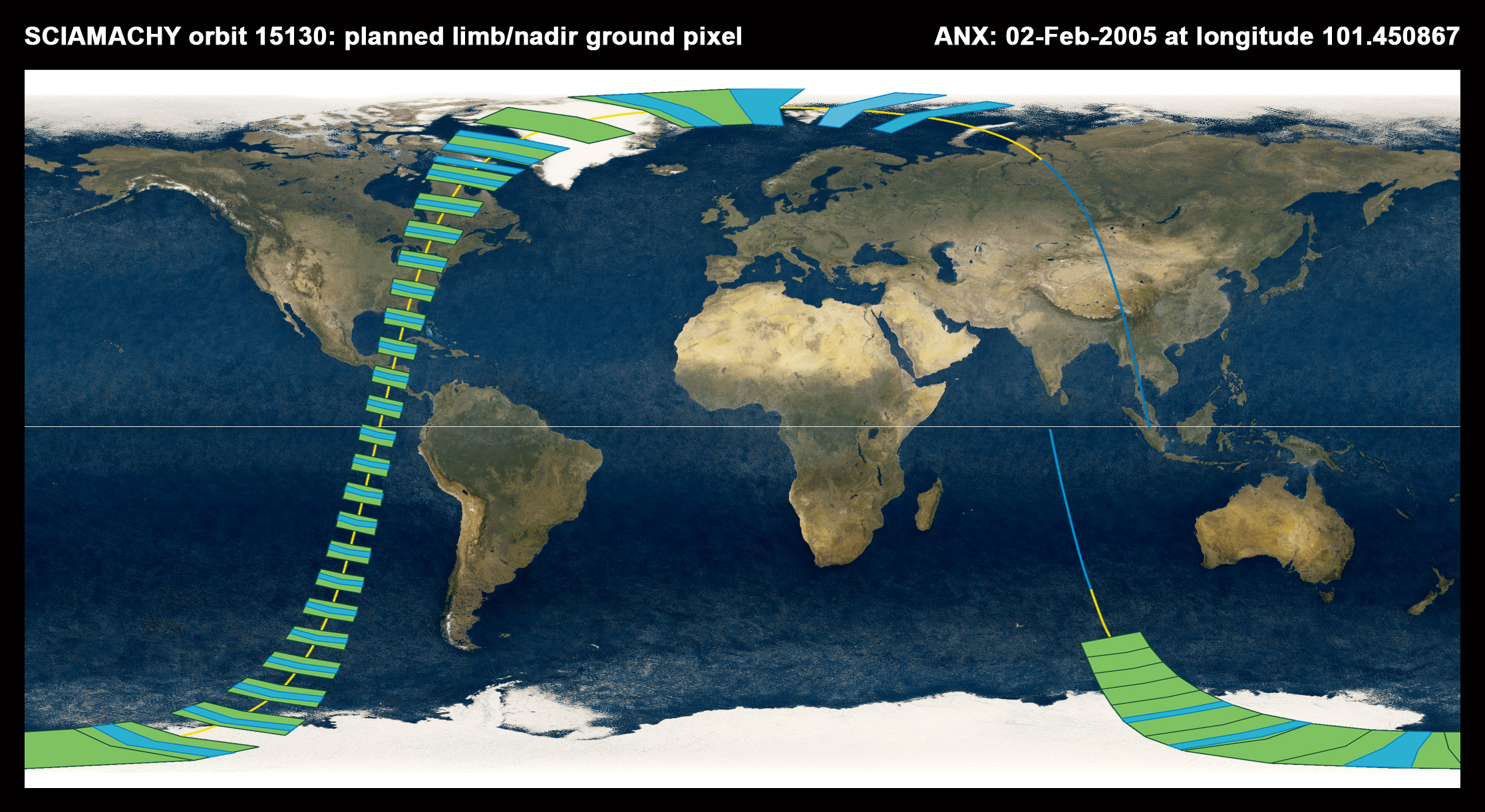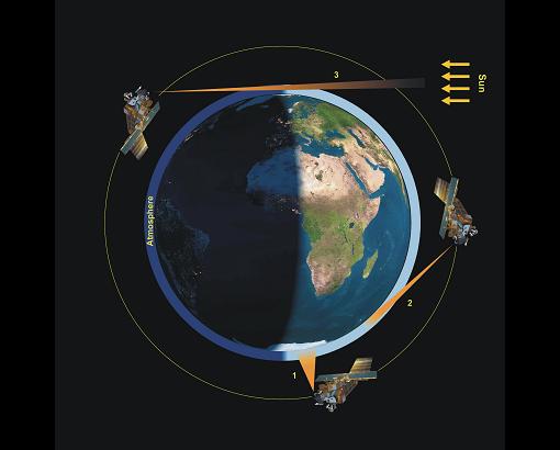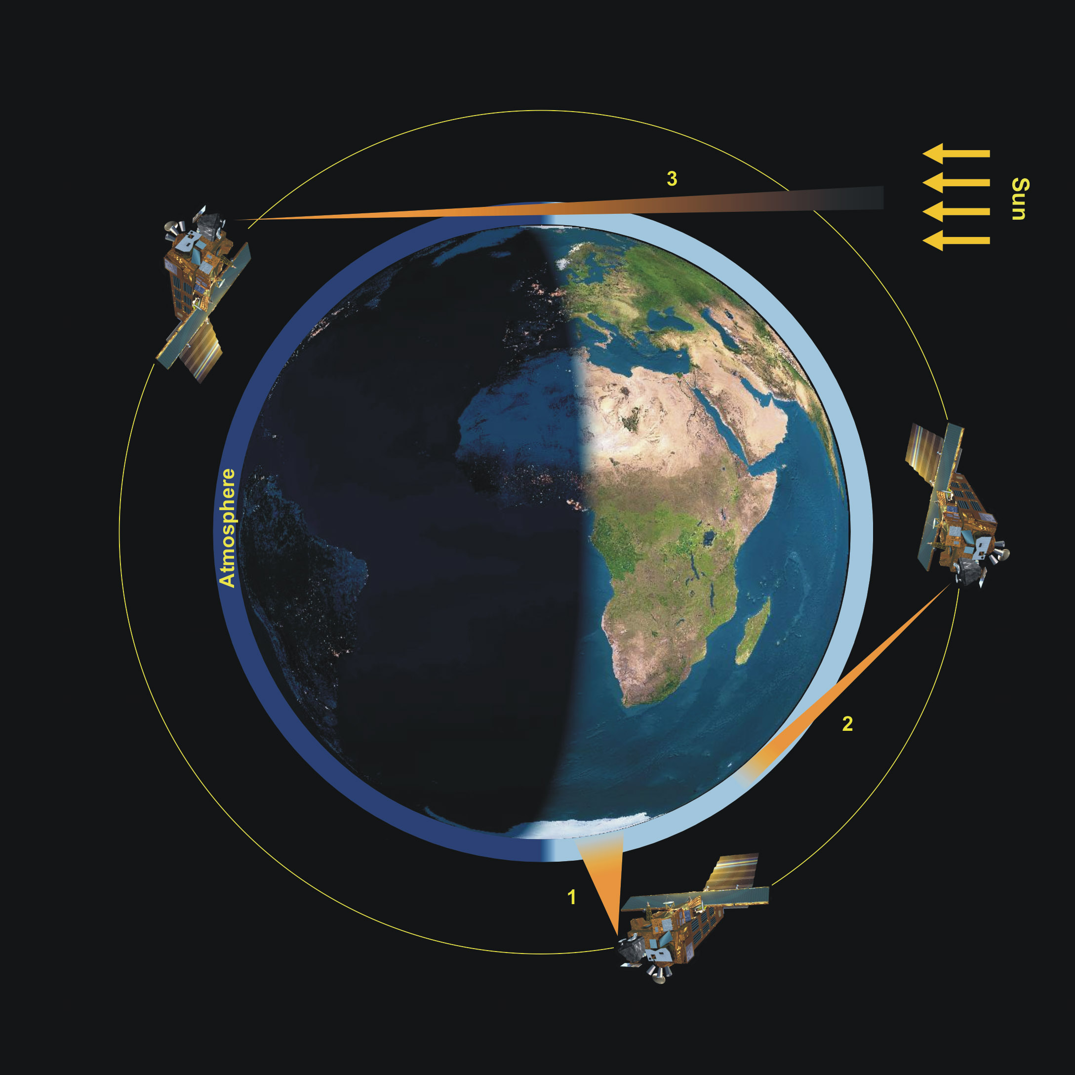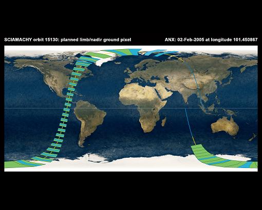 SCIAMACHY's scientific observation modes: 1 = nadir, 2 = limb, 3 = occultation. (Courtesy: DLR-IMF) |