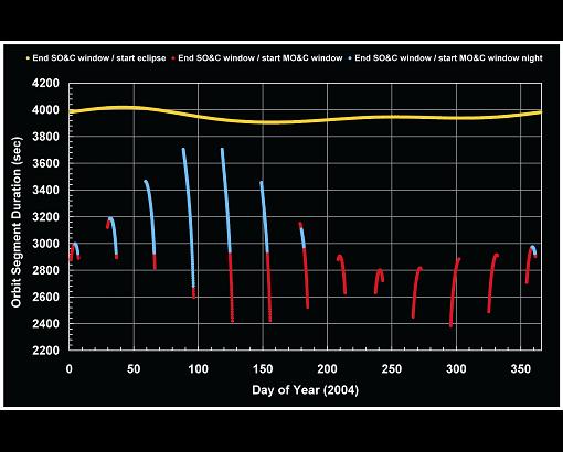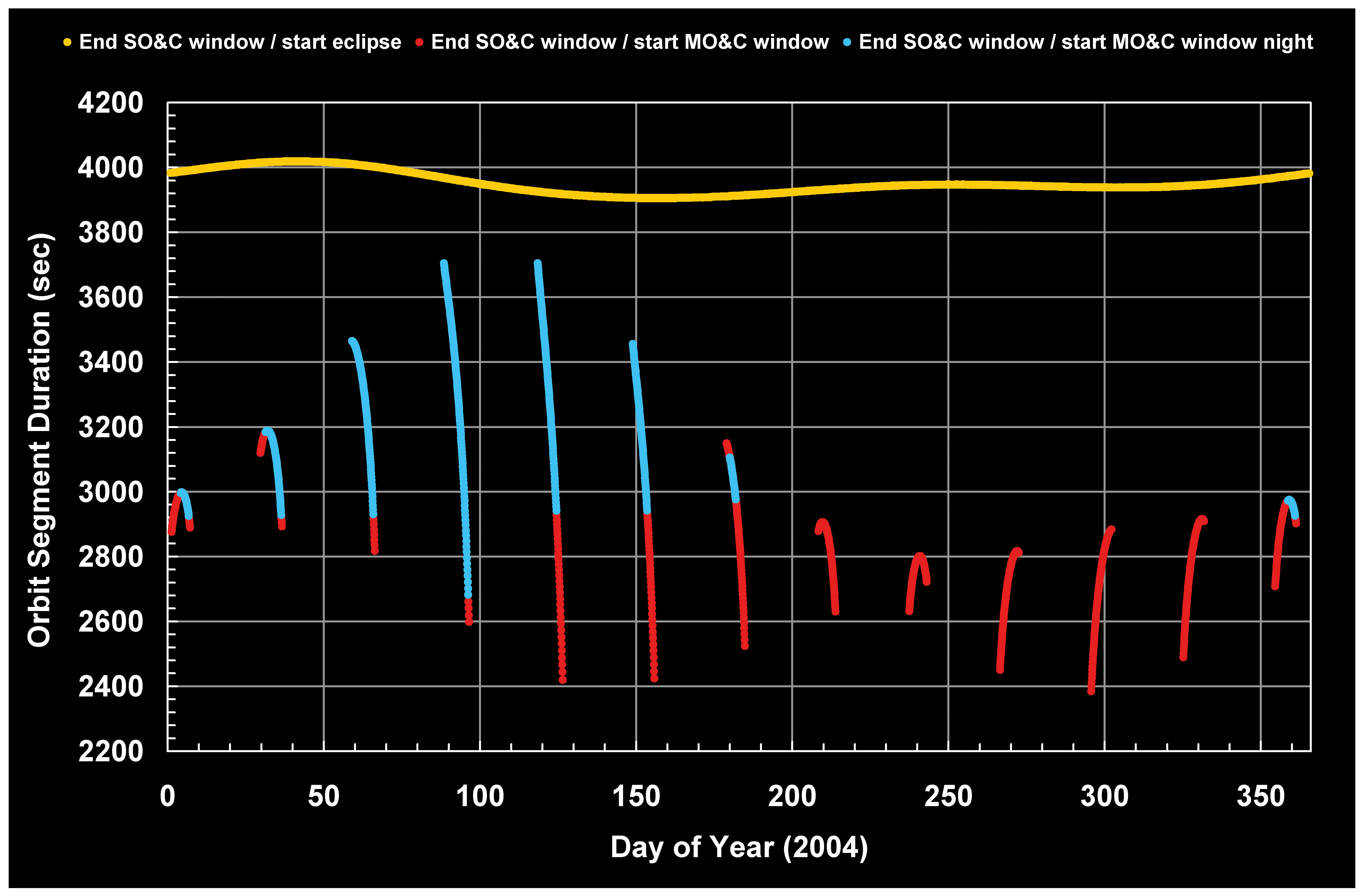 The time interval between end of SO&C window and start of eclipse varies only slightly over a year (yellow).