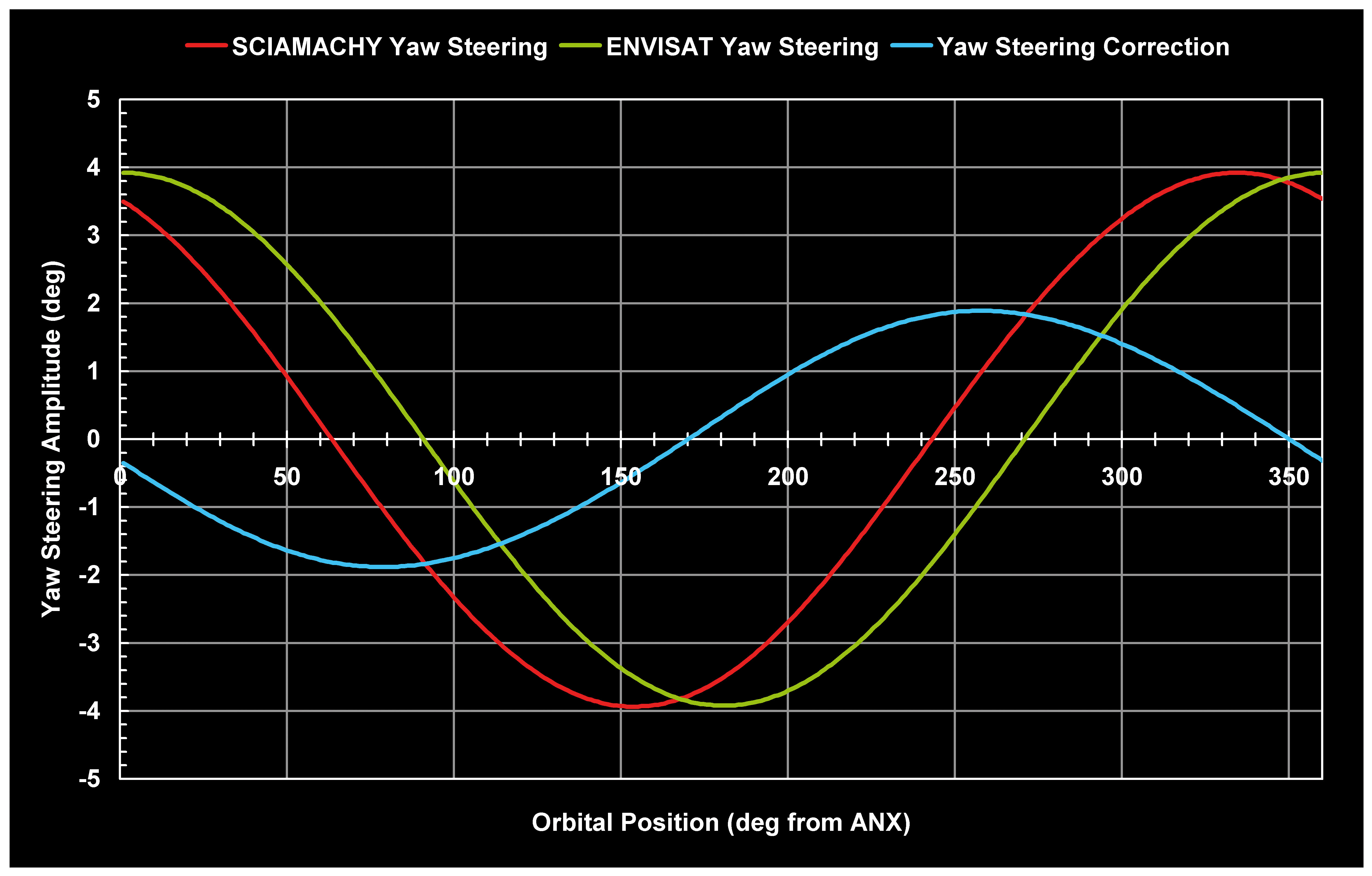 ENVISAT's yaw steering, the yaw steering correction of limb states and the resulting SCIAMACHY yaw steering.