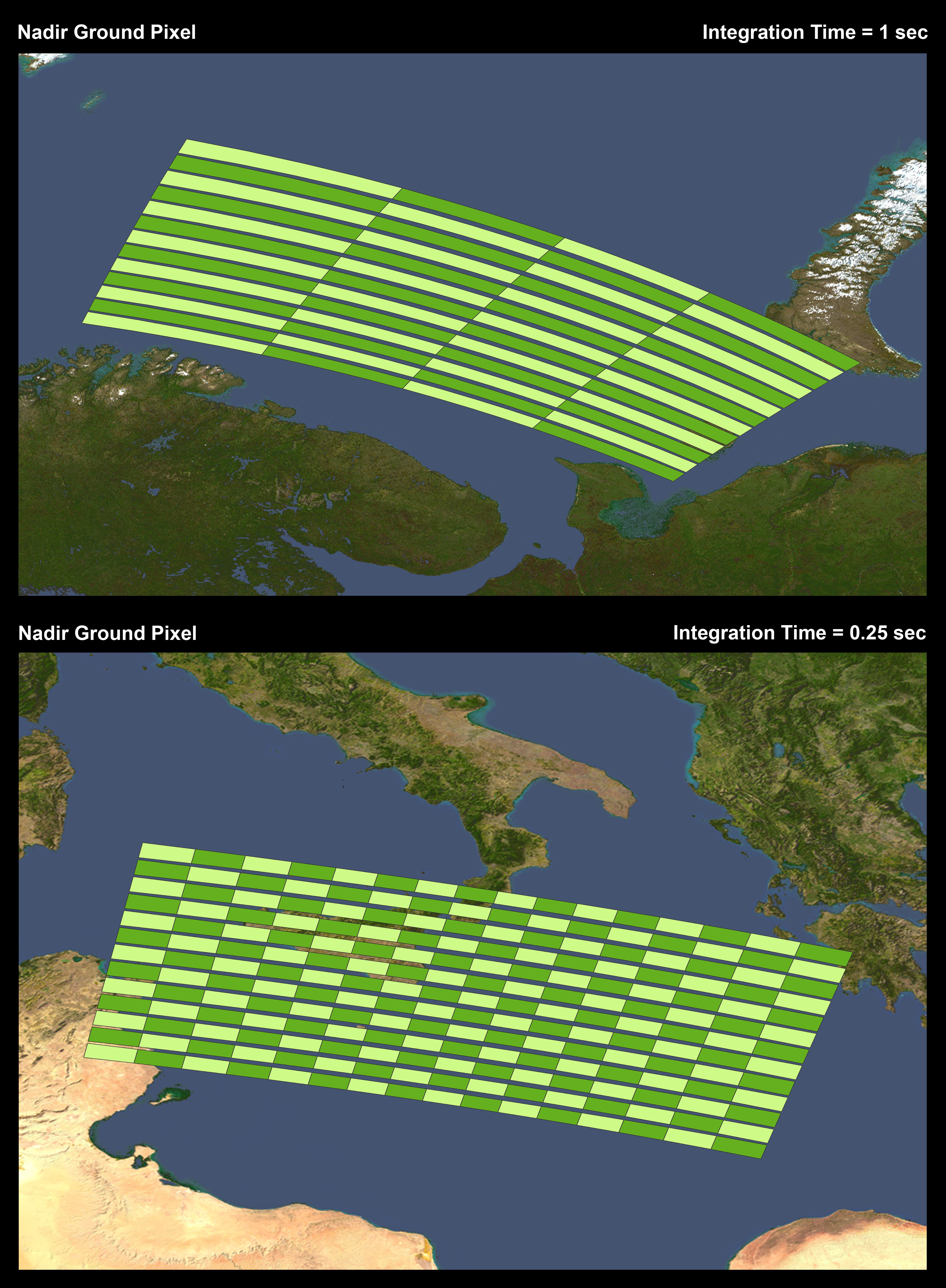 IFoV with only a small contribution of the integration time. (Courtesy: DLR-IMF; background maps: NASA) |