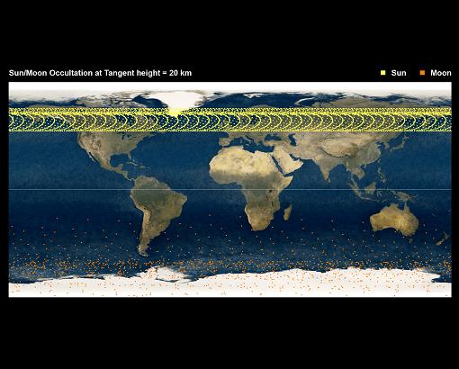 Tangent point geolocation at an altitude of 20 km for all solar and lunar occultation measurements in the year 2009.
