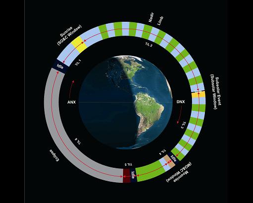 SCIAMACHY reference orbit with Sun/Moon fixed events along the orbit. The events define orbital segments which are filled with timelines.